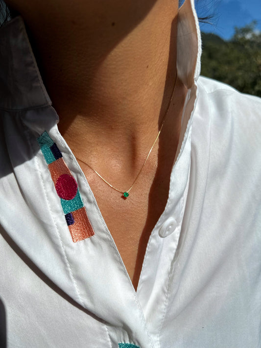 Emerald drop necklace surrounded by diamonds 18k - 1,38ct