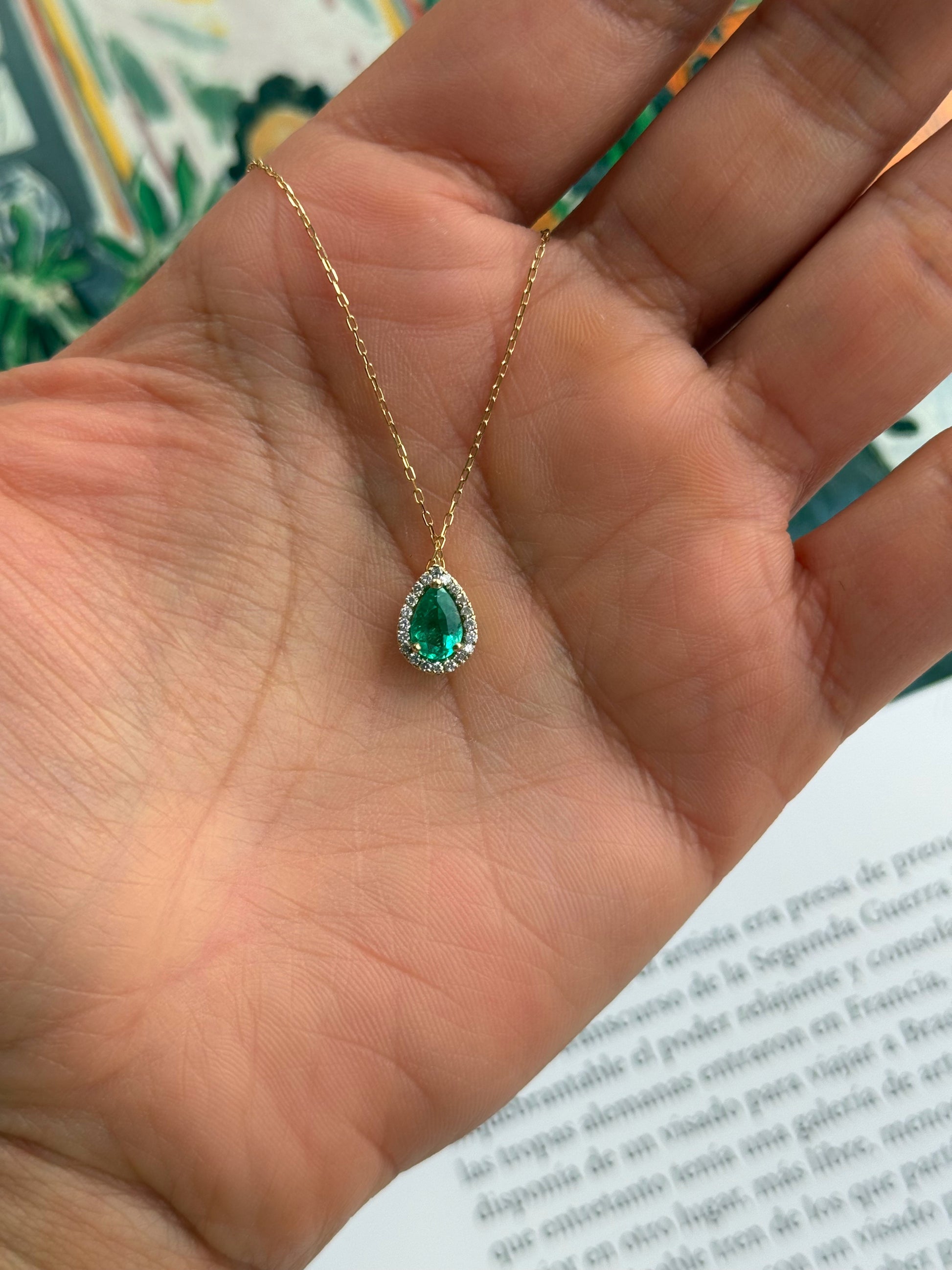 Emerald drop necklace surrounded by diamonds 18k gold chain